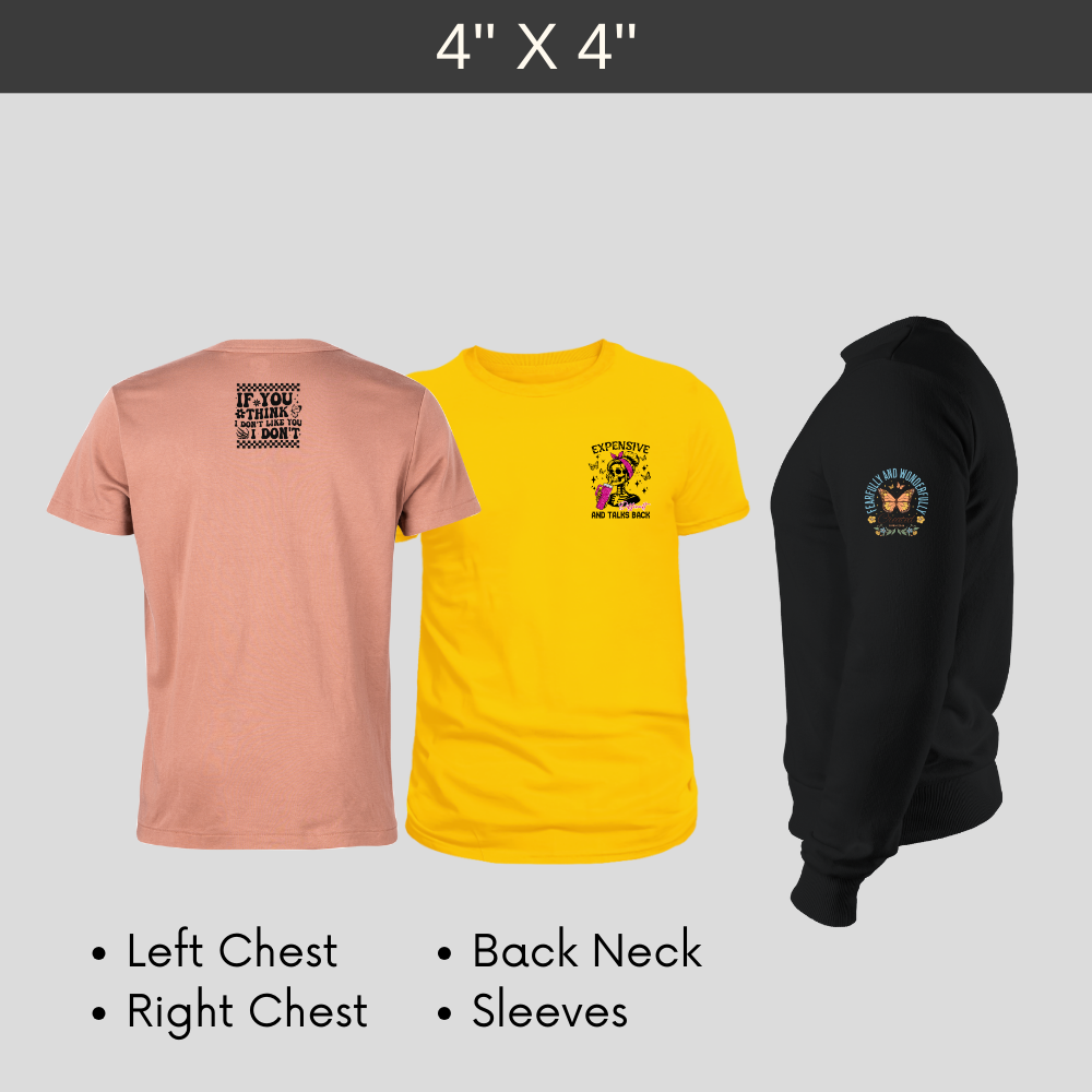The process is simple – just press and go! To ensure optimal print quality, we require ready-to-print artwork in PNG format with a transparent background, a resolution of 300 DPI, and accurate sizing. Note that if your design has a white background, it will be printed as part of the design since DTF printers use white ink. For single-image transfers, we resize the artwork proportionally to fit the selected transfer size, preserving the original aspect ratio. If you need a custom aspect ratio, our support team at DTFDesign is available to assist.