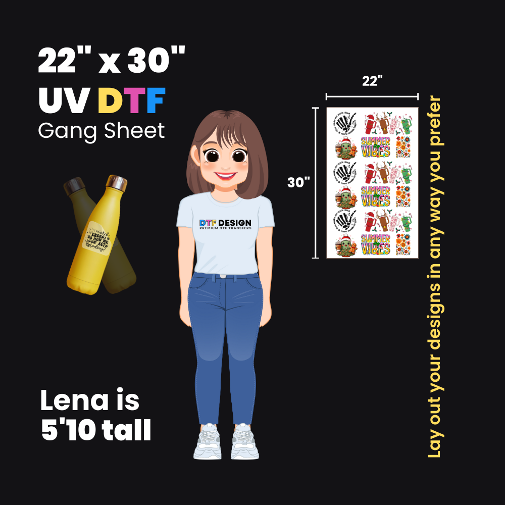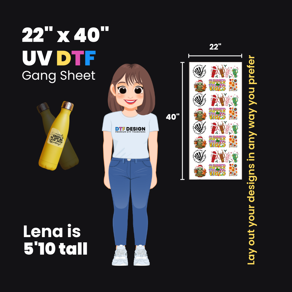 Discover the perfect blend of innovation, quality, and reliability with our UV DTF gang sheets at DTF Design—your ultimate partner for professional-grade, long-lasting prints.